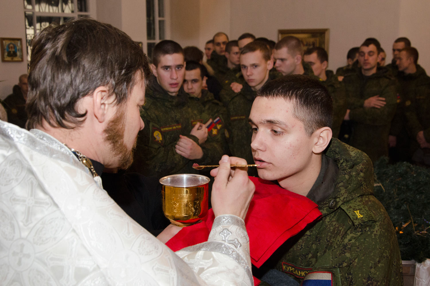 За богослужением военнослужащие вместе с прихожанами храма причастились Святых Христовых Таин. Курсанты отмечают, что, несмотря на все сложности воинской службы, для них, как для верующих, необходима молитвенная поддержка и посещение Божественной литургии в столь долгожданный праздник. Офицеры училища заметили, что за последние годы курсанты все чаще стараются бывать в храме Божьем.