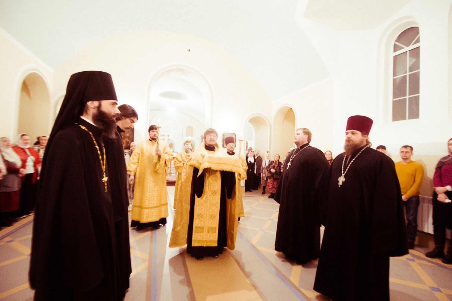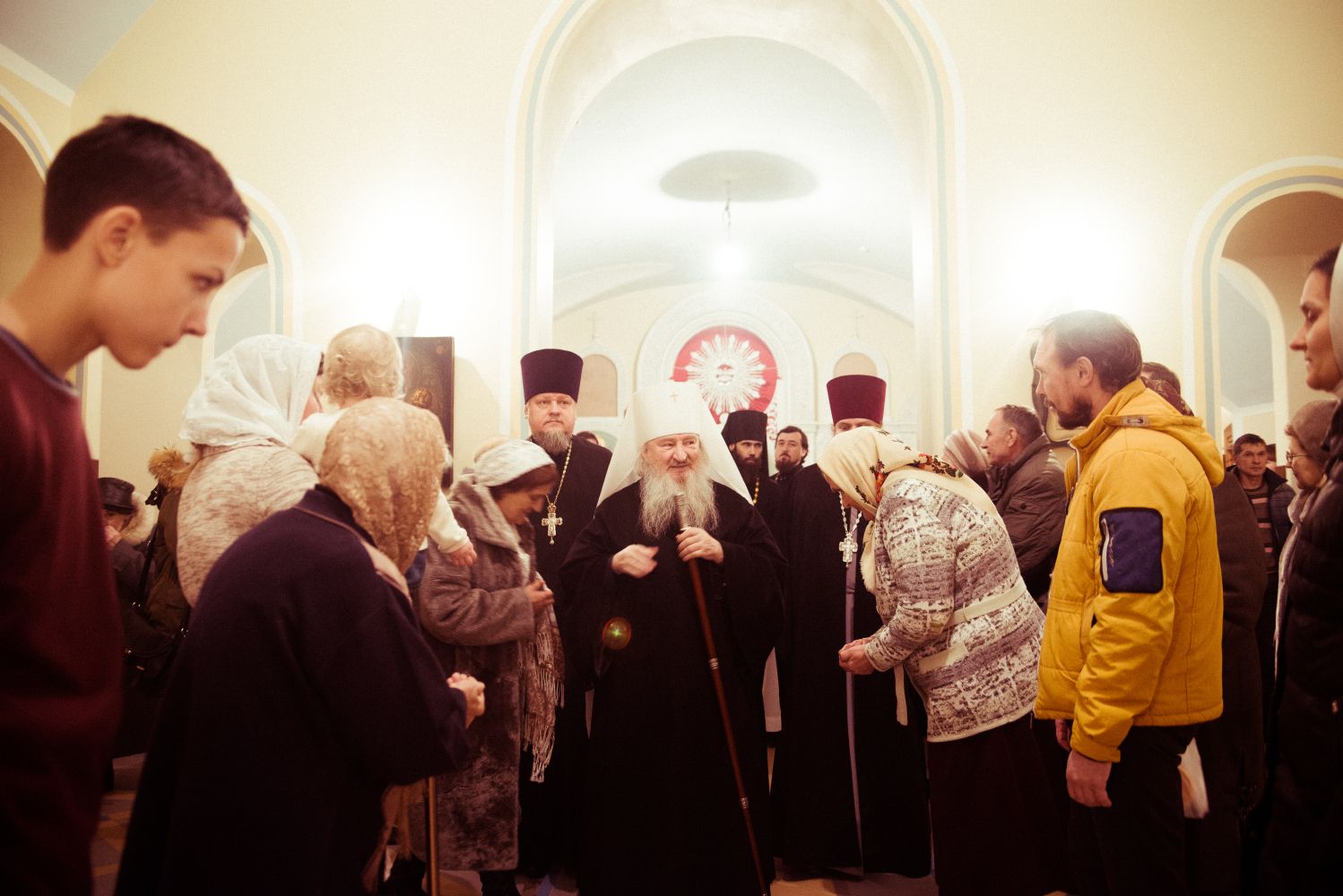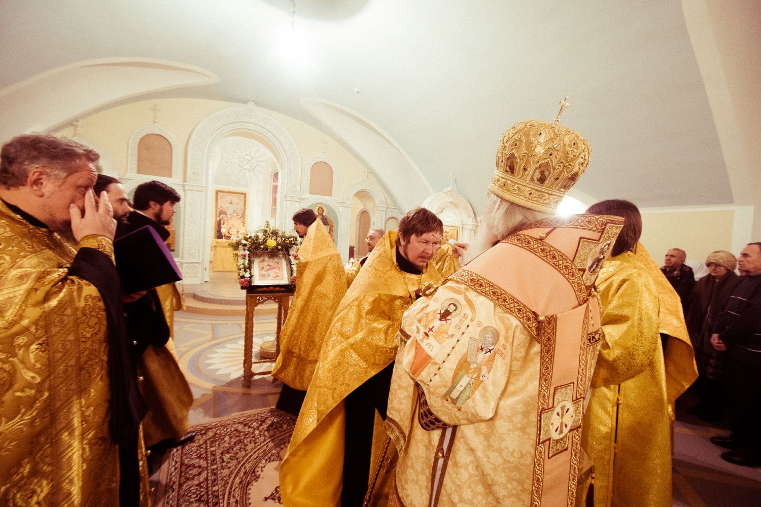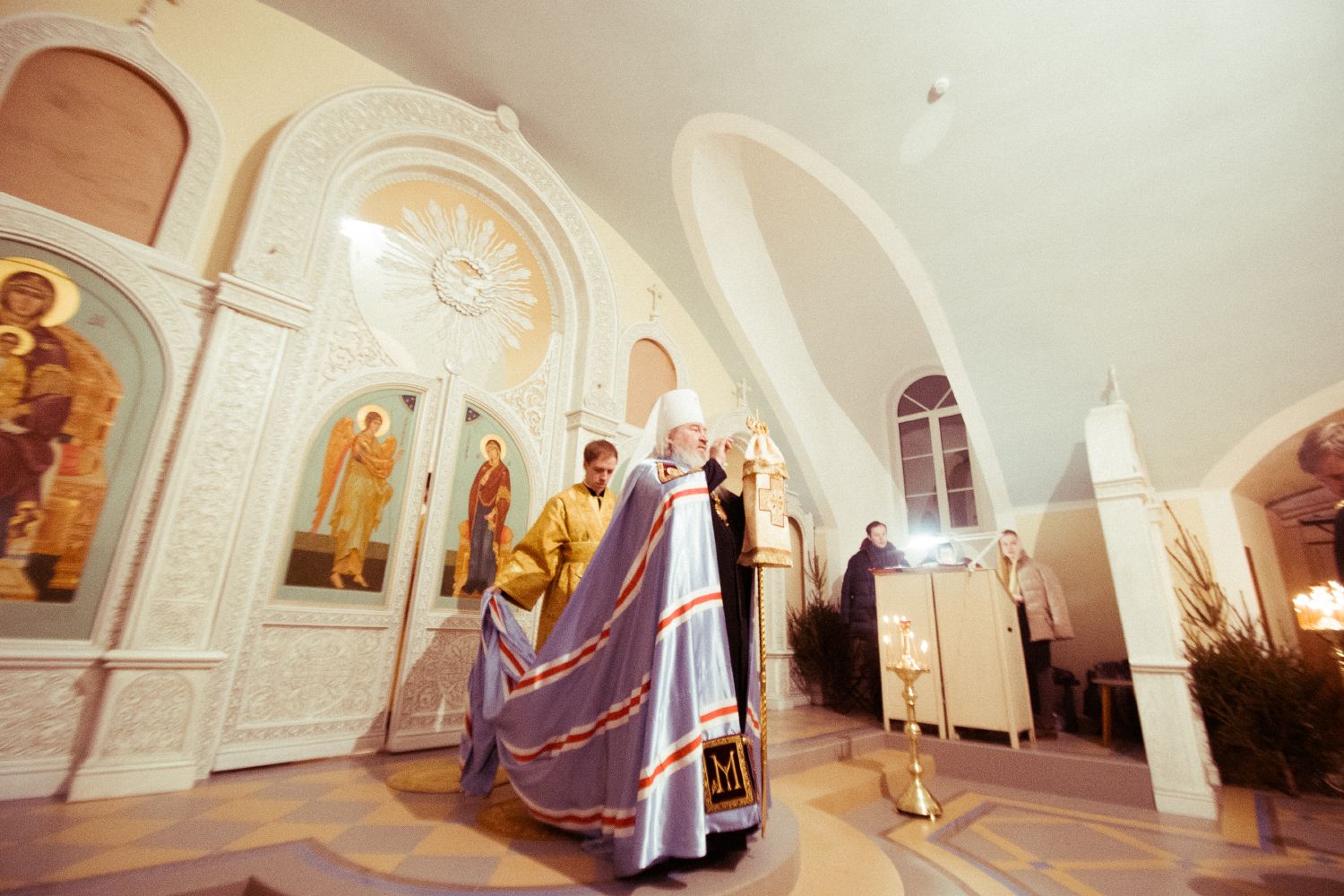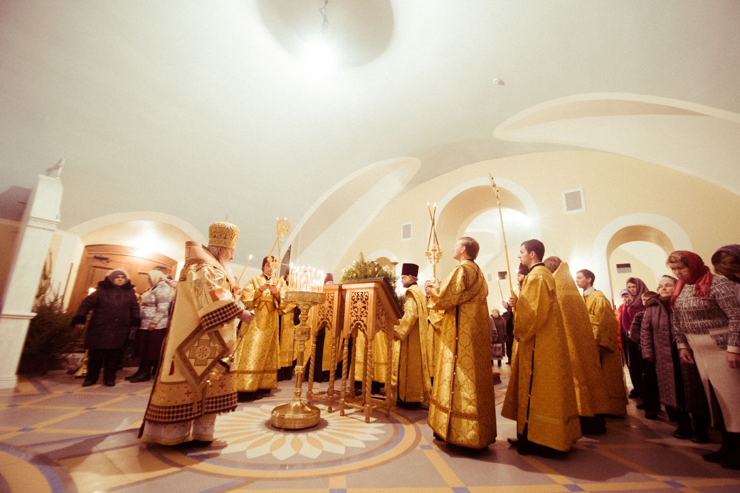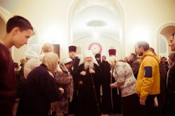 По завершении вечернего богослужения владыка Феофан поздравил всех с Рождеством Христовым и воскресным днем и поблагодарил настоятеля за труды по строительству одного из самых крупных храмов Казани и призвал начать труды по организации воскресной школы.