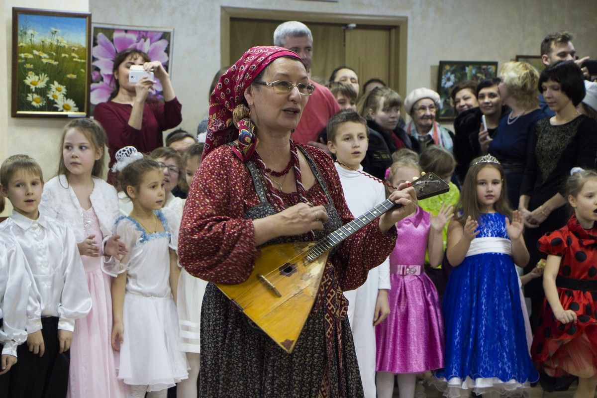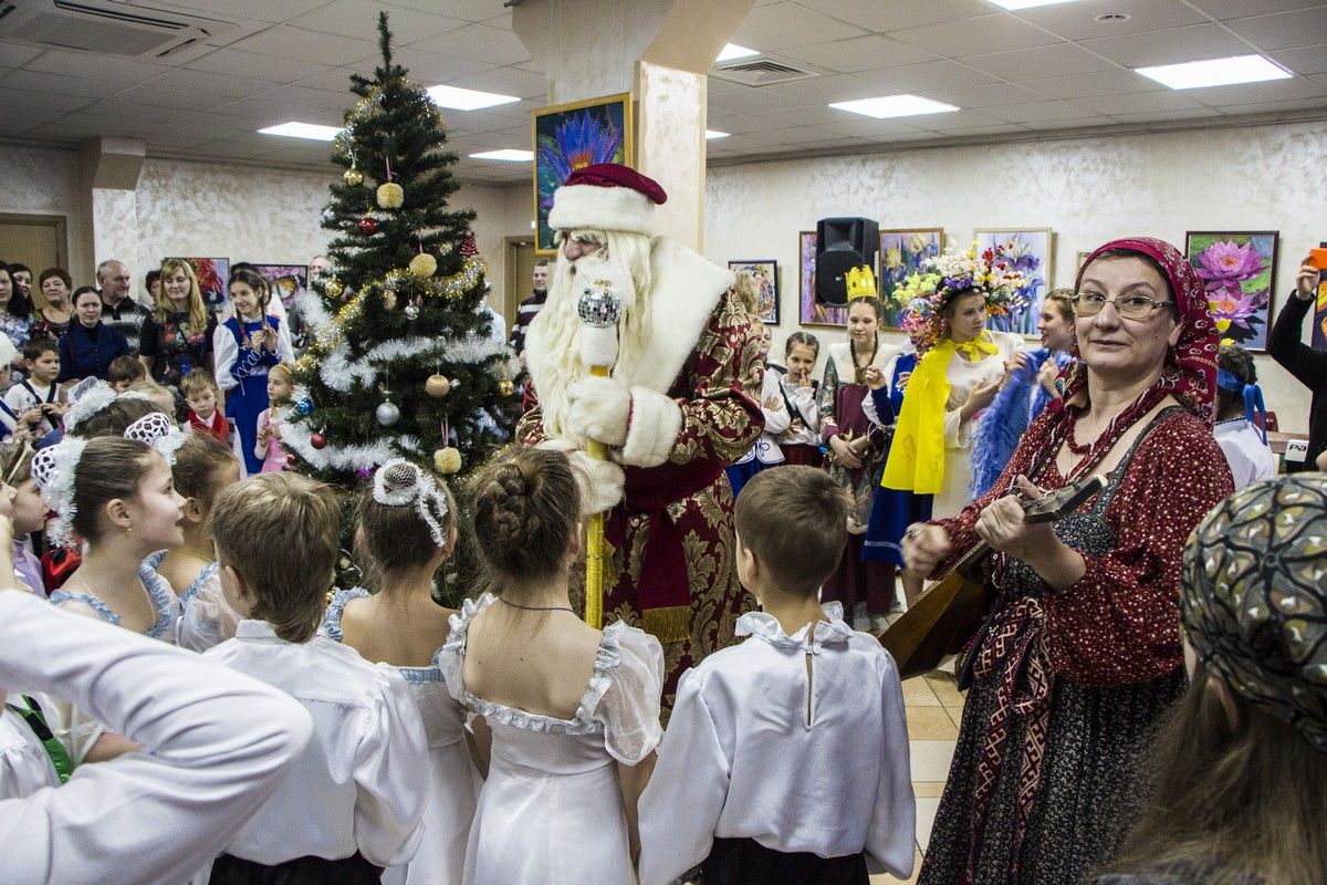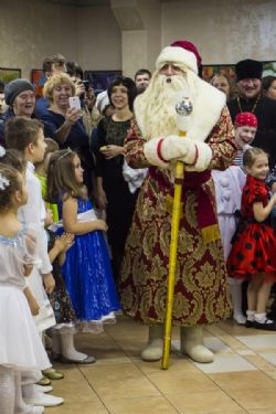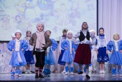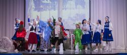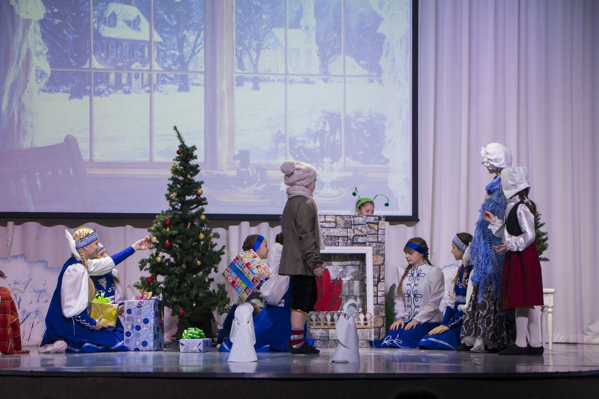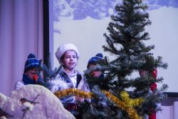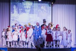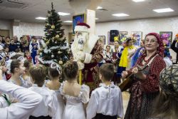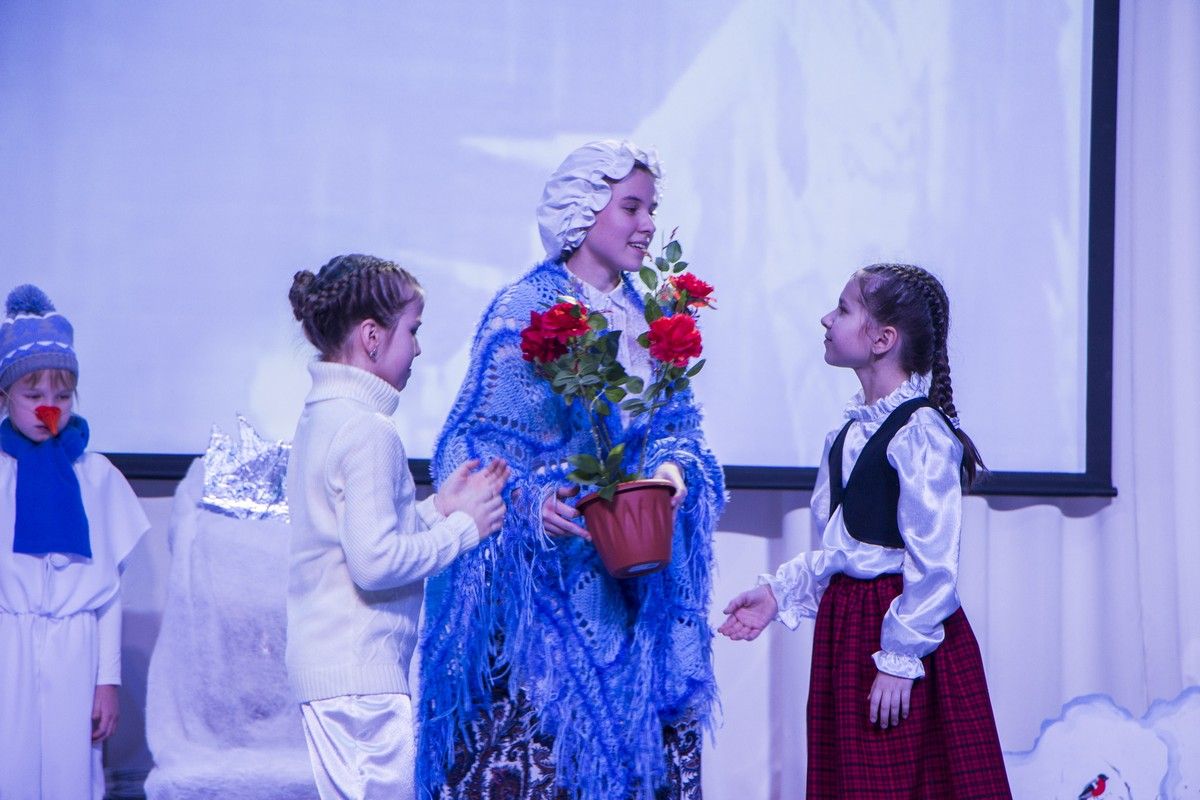 В конце спектакля ребят посетил сказочный волшебник — Дед Мороз. Дети кружились в хороводе, колядовали, пели песни под аккомпанемент балалайки, и за это добрый дедушка наградил их сладкими подарками.