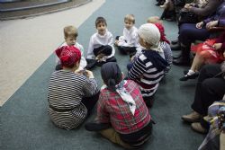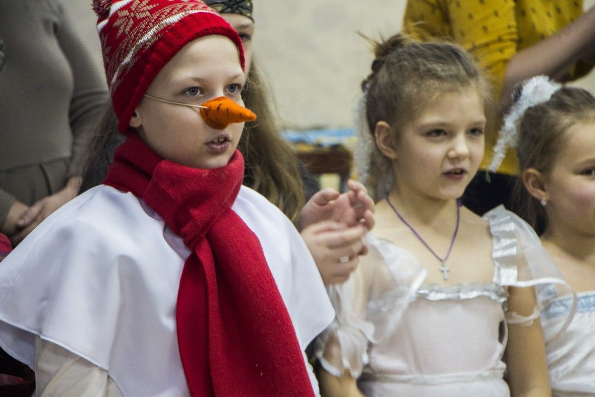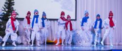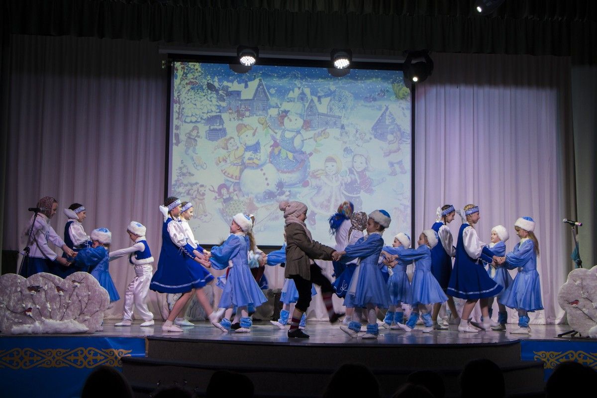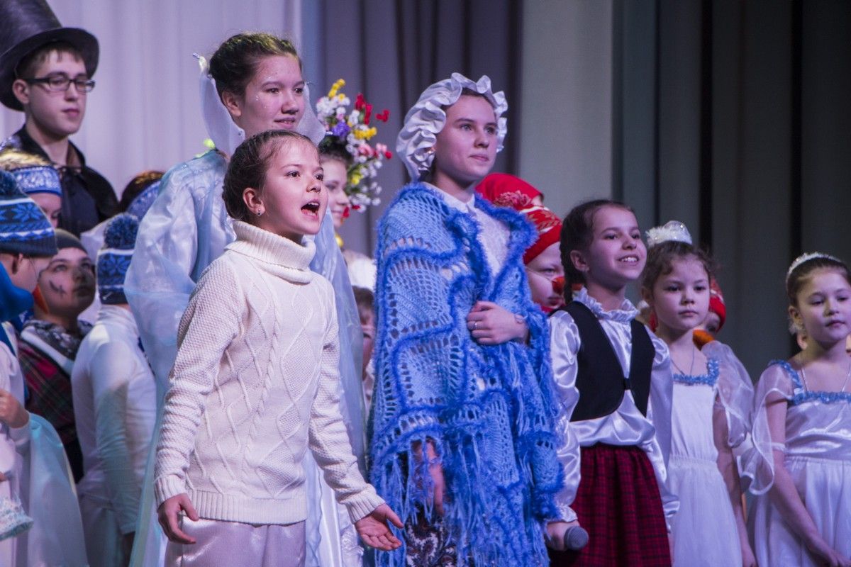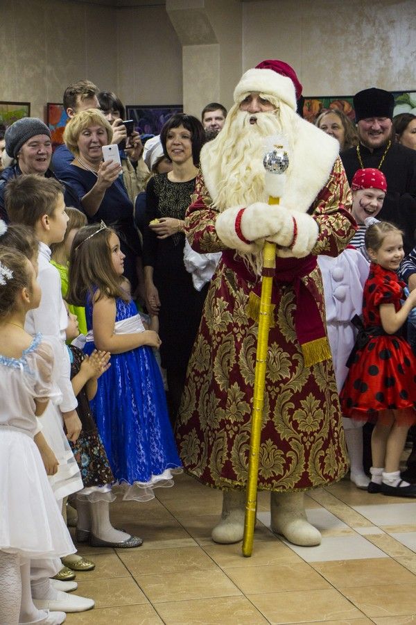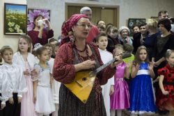 В конце спектакля ребят посетил сказочный волшебник — Дед Мороз. Дети кружились в хороводе, колядовали, пели песни под аккомпанемент балалайки, и за это добрый дедушка наградил их сладкими подарками.