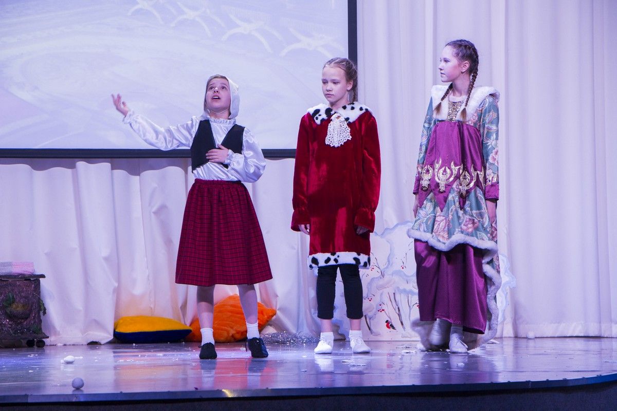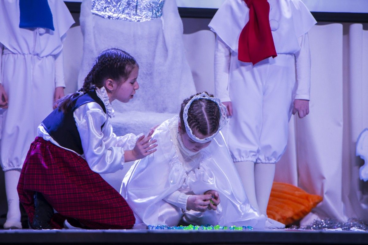 — За кулисами была суета, как в Большом театре, наверное. Все волновались, тем более что некоторым нужно было переодеться за несколько секунд. А вчера мы репетировали и устанавливали декорации. Декораций довольно много, и маленьким детям сложно их выносить. Но мы помогали друг другу. Сначала вынесешь стол, а затем бежишь за елкой, — раскрывает тайны закулисья участница студии «Радужные веселинки» Аполлинария Дружкова, исполнившая роль феи в спектакле «Снежная королева».