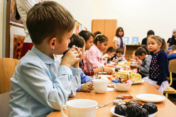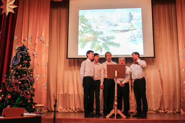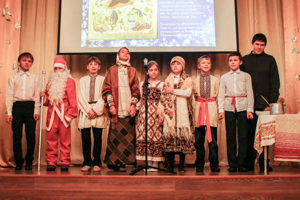 Перед началом театрализованного представления, подготовленного силами преподавательского состава, учеников, их родителей и прихожан подворья, в школе состоялась общая трапеза. Затем многочисленные гости и участники праздника проследовали в просторный актовый зал. Главное место здесь по праву заняла торжественно украшенная икона Рождества Христова, установленная в глубине сцены. На фоне этого образа, являющегося одним из главных в Православии, и происходило праздничное действо.