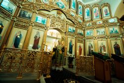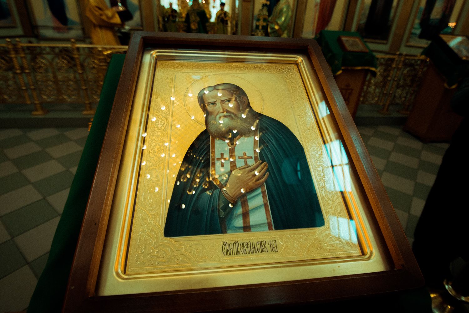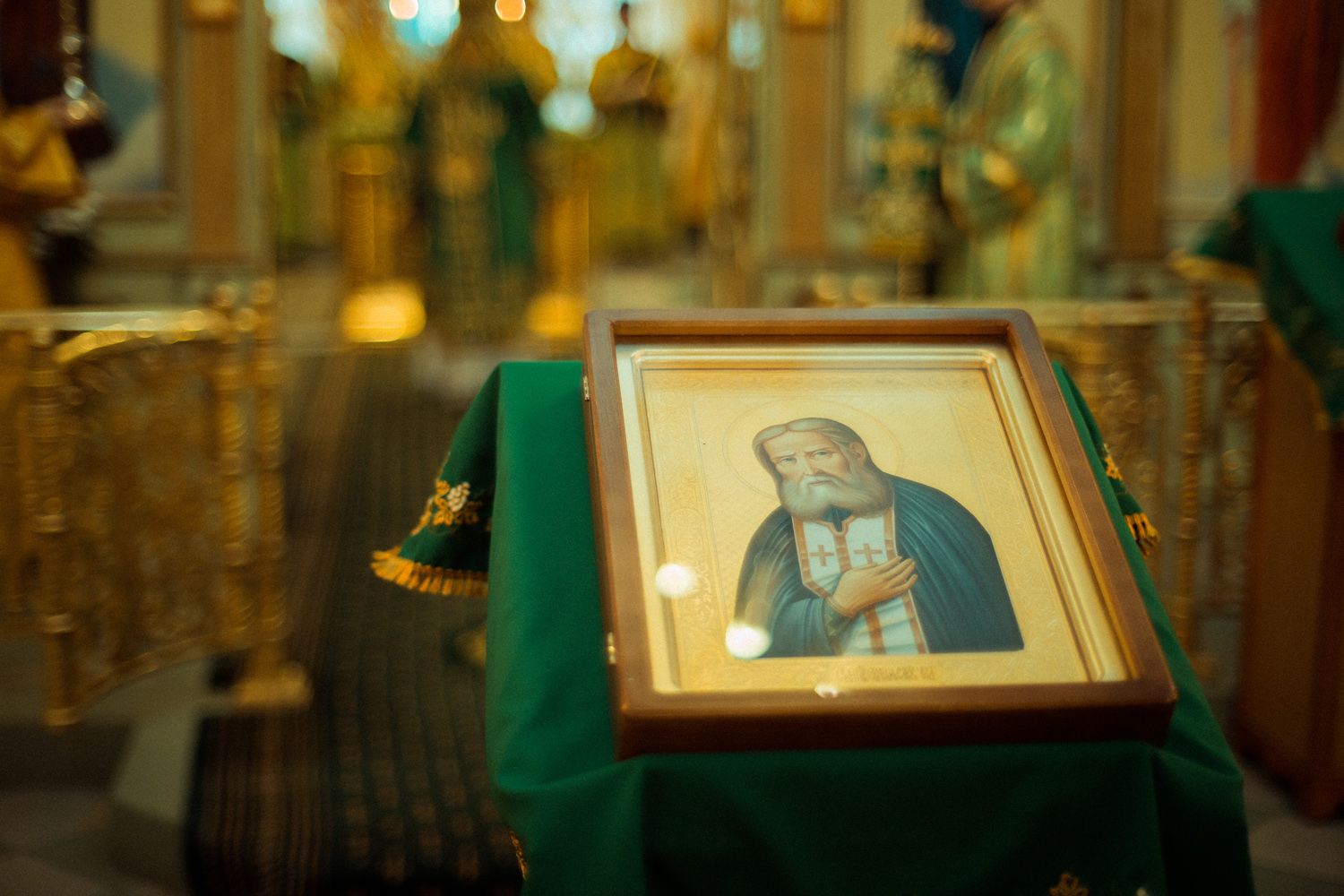 В завершение Литургии священнослужители в центре храма перед иконой преподобного пропели славление святому Серафиму.