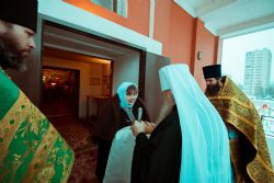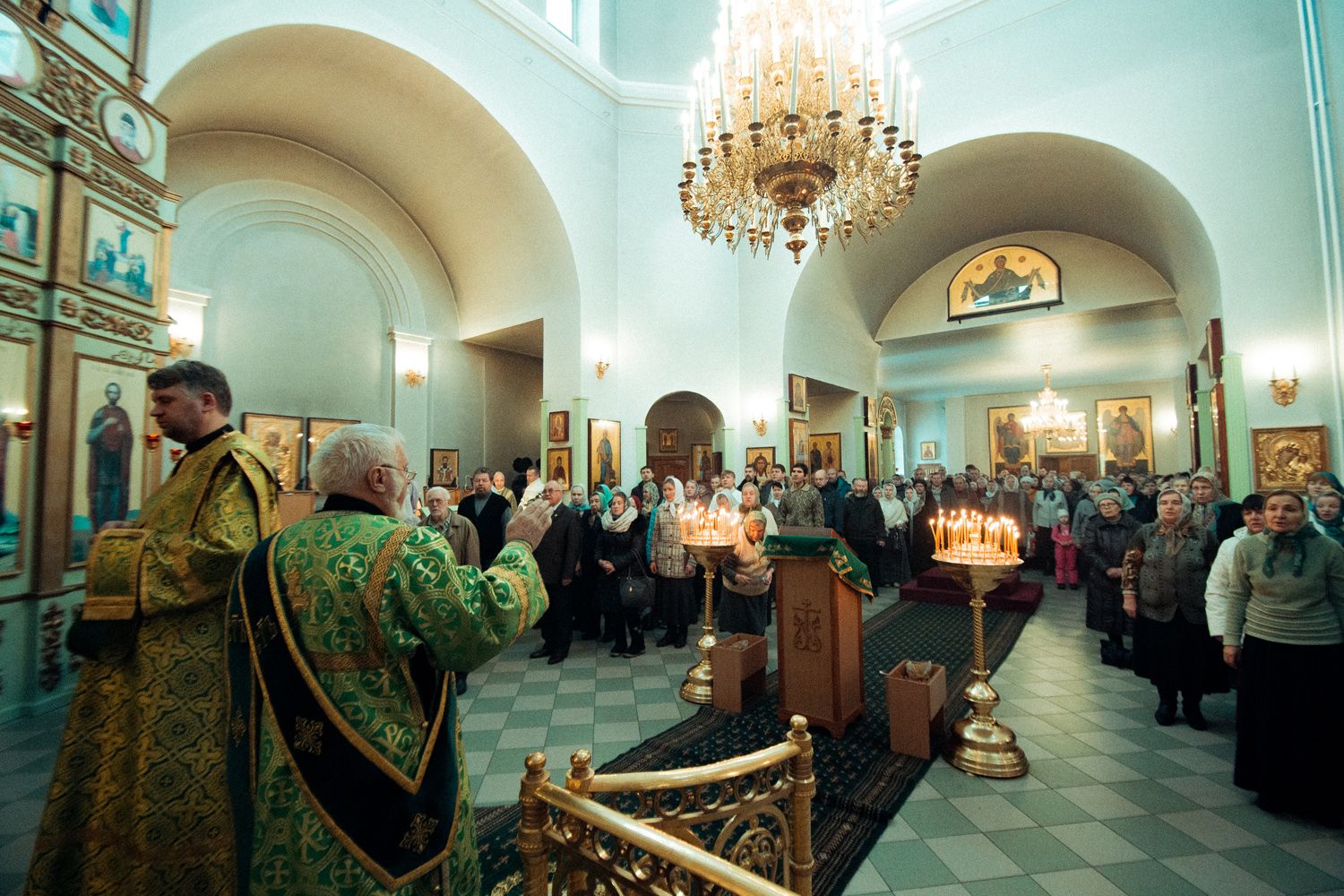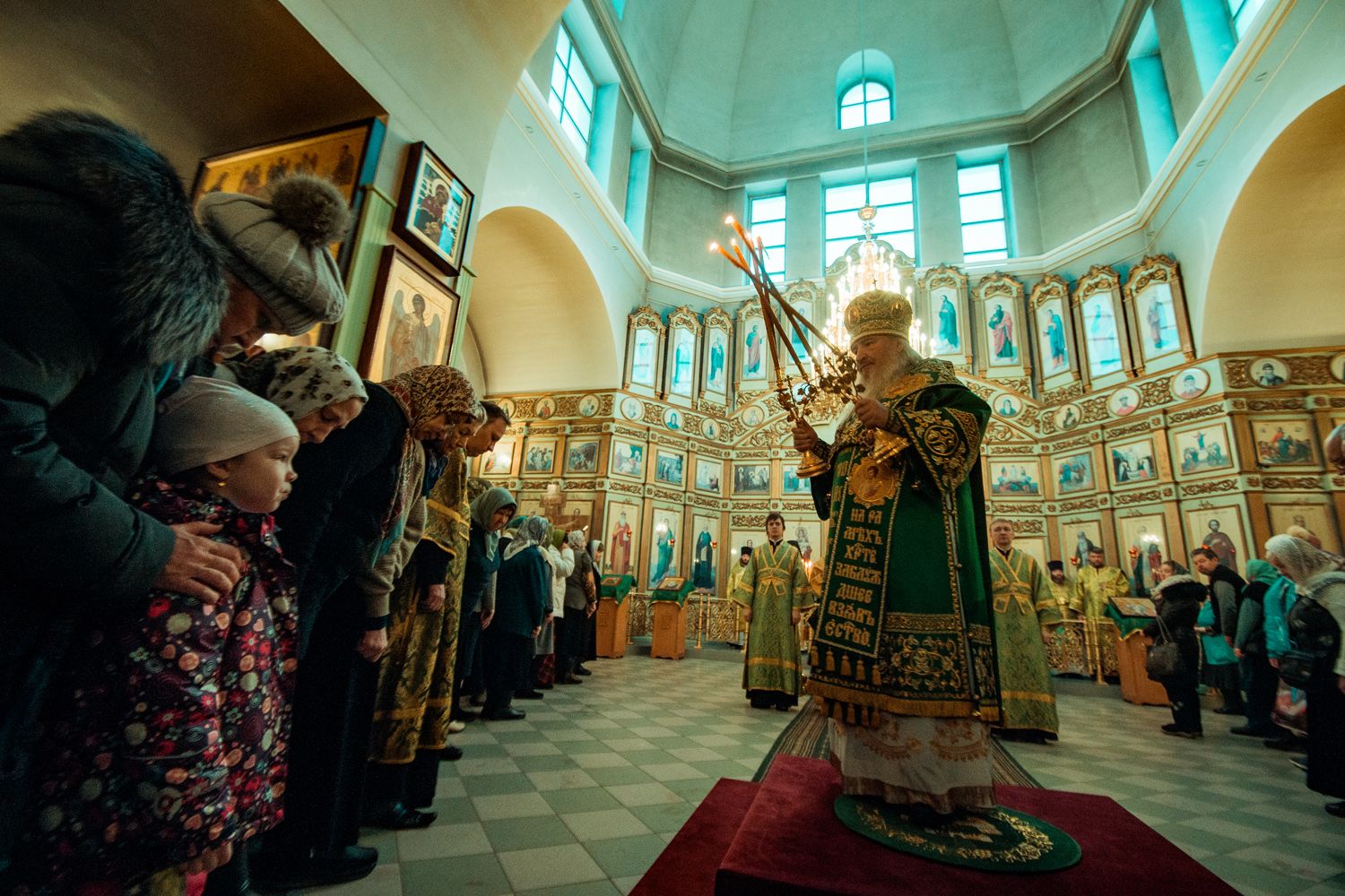 За богослужением в престольный праздник главе Татарстанской митрополии и правящему архиерею Казанской епархии сослужили духовенство и настоятель прихода протоиерей Димитрий Салков, первый проректор Казанской духовной семинарии игумен Евфимий (Моисеев), настоятель Свято-Введенского Кизического мужского монастыря города Казани игумен Пимен (Ивентьев).