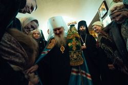 В своем слове к принявшим участие в богослужении священнослужителям и мирянам митрополит Феофан поздравил собравшихся с празднованием памяти преподобного Серафима и престольным днем храма. Архиерей особо отметил усилия певчих: «молодцы, пели слаженно, стройно и так, как положено. Даже нет замечаний никаких».