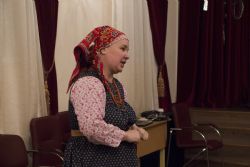 — Фольклором я занимаюсь очень давно. Была участником фольклорного объединения «Царев город» (г. Йошкар-Ола). В настоящее время у нас нет ни объединения, ни студии — мы сами по себе. Мы пытаемся популяризовать фольклор, чтобы каждый смог окунуться в культуру наших предков. Целью нашей деятельности является сохранение культуры региона. Есть общерусская культура, но нам важно сохранить культуру именно нашего края, поскольку она отличается от культуры других регионов. Сейчас о ней никто не помнит, потому что все было уничтожено в советское время вместе с религией, — рассказывает Евгения Иванова.