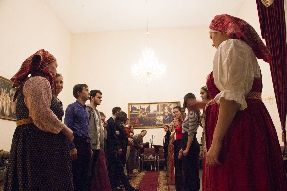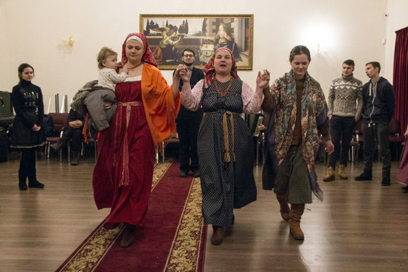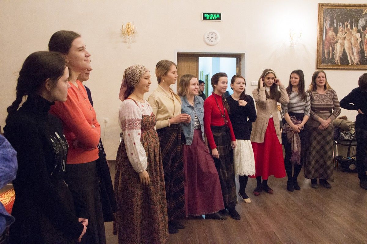 Именно такую вечерку в старом стиле устроили отдел по делам молодежи Казанской епархии и приход Веры, Надежды, Любови и матери их Софии в воскресной школе «Апостол», пригласив на празднование людей, знающих толк в этом непростом деле, а также казанских юношей и девушек. Евгения Иванова — фольклорист-самоучка. Она говорит, что ни в какие объединения не вступала, а просто расспрашивала бабушку, ездила в экспедиции и посещала тематические фестивали.