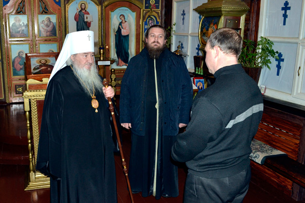 Глава Татарстанской митрополии посетил расположенный на территории колонии храм в честь благоверного Александра Невского, где поинтересовался у верующих религиозной жизнью в стенах колонии.