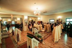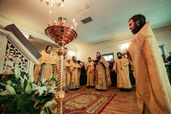 В завершении Литургии, перед иконой священномученика Ермогена была прочитана молитва, а духовенством и молящимися пропето славление святому покровителю храма.