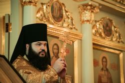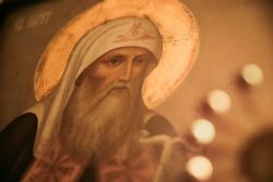 Затем игумен Марк поздравил верующих с престольным праздником и обратился к присутствовавшим с проповедью, в которой отметил особое избранничество Патриарха Ермогена Божьей Матерью:
