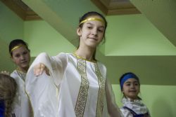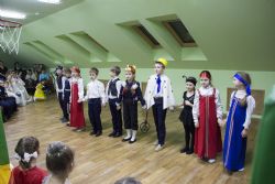 Но какая же литературно-музыкальная гостиная без песни? Воспитанники вокально-хореографического коллектива «Радужные веселинки» исполнили всем известную песню «У моей России длинные косички…», а затем порадовали зрителей танцем.