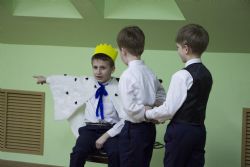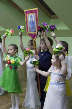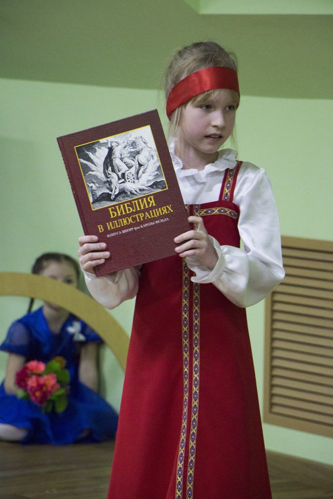 Самые маленькие участники праздника разыграли театральную сценку. Сюжет постановки был незамысловатым, но по-своему интересным. В одном дворе мальчика Дениса не взяли играть в футбол старшие ребята — он на них обиделся и внезапно очутился в стране Обижании, в которой встретил таких же обиженных детишек, в глазах которых не было задора и радости. Но вскоре Денис произнес фразу: «Да я теперь и не обижаюсь на них…». Вдруг, откуда ни возьмись, появился стражник, который схватил Дениса и отвел его к королю, не щадившему тех, кто перестал обижаться. Дениса посадили в сырую, холодную темницу. Но новые друзья смогли помочь нашему герою, отыскав волшебную книгу — Библию, в которой сказано: «Любите врагов ваших, благословляйте проклинающих вас и молитесь за обижающих вас и гонящих вас». Ребята догадались, что им нужно простить всех, в том числе и короля Обидуса Второго.