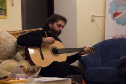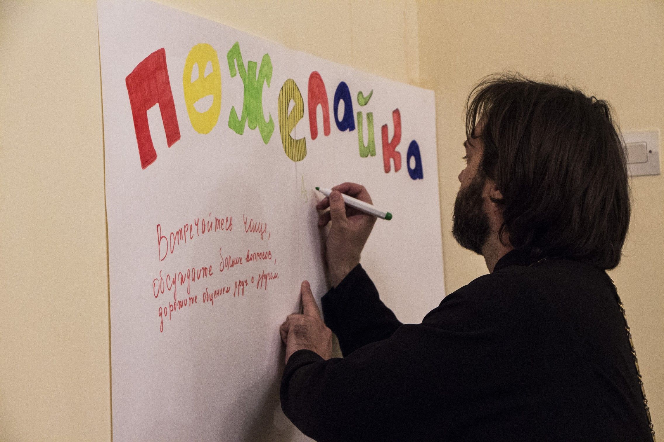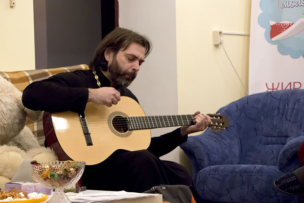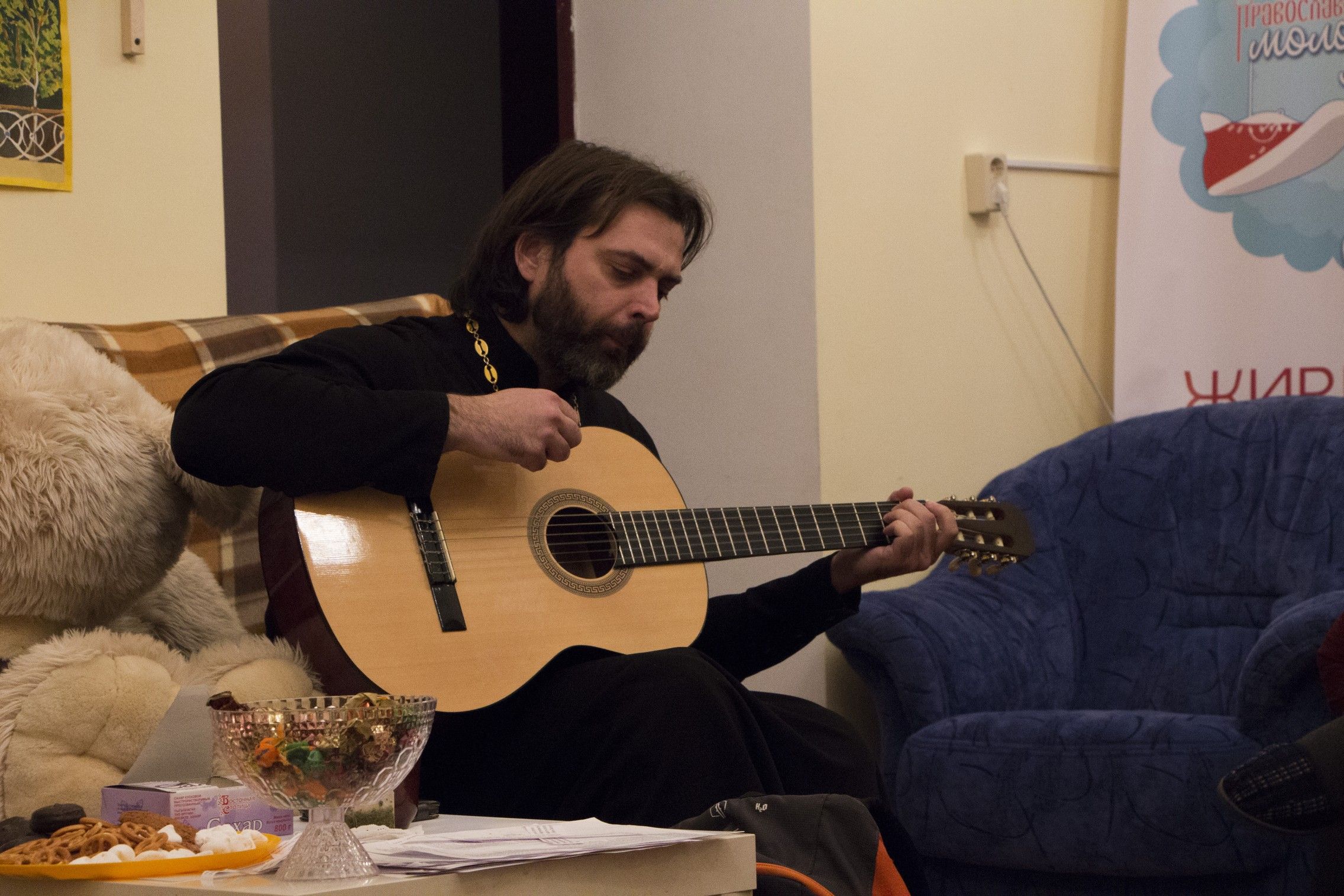 Не обошлось на вечере и без музыки. Иерей Николай Дьяков исполнил для ребят несколько известных песен, которые заставляют по-другому взглянуть на этот мир, и в память о встрече расписался на импровизированной стене пожеланий.