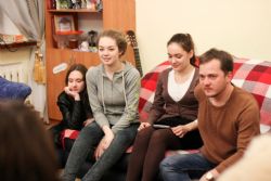 Однако в начале встречи вопросы задавал гость: «Есть мнение, что если хочешь получать от жизни наслаждение, то нужно играть и не обращать внимания ни на какие правила. Но можно ли так жить? Как вы считаете?». Молодежь тут же включилась в обсуждение: одна из участниц встречи сказала, что «каждый живет, как хочет», а другая добавила, что «мы — православные христиане, у нас есть совесть, которая говорит нам, как правильно жить».