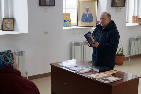В воскресенье 6 марта после Божественной литургии в храме Пресвятой Троицы села Усады Высокогорского района преподаватель воскресной группы Павел Дьяконский рассказал прихожанам о роли православной книги в жизни христианина, о творениях святых отцов Церкви, пояснил значение православных книг, помогающих понять Священное Писание, богослужение, приобщиться к православной традиции. С некоторыми из книг можно было познакомиться поближе на организованной выставке.