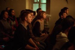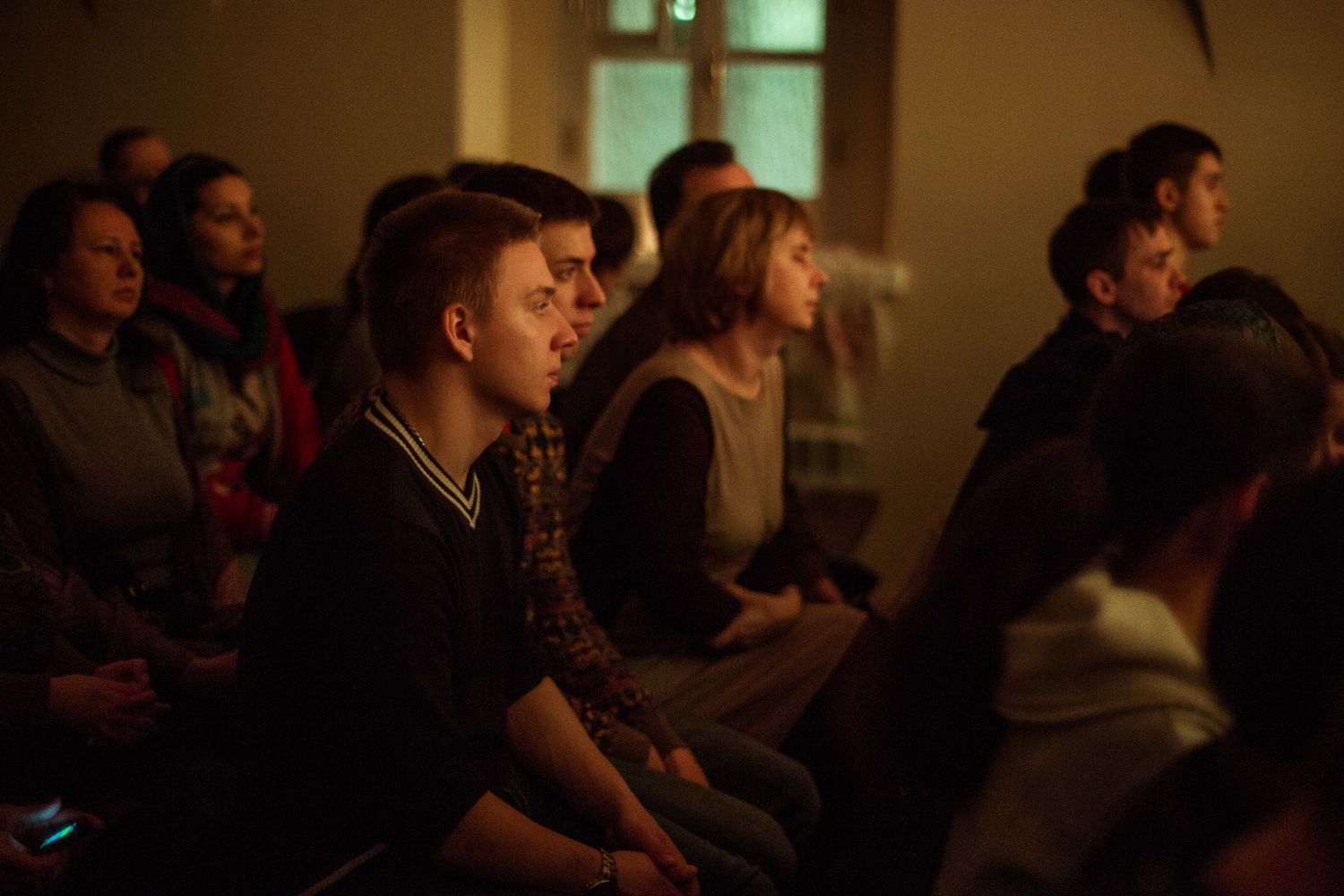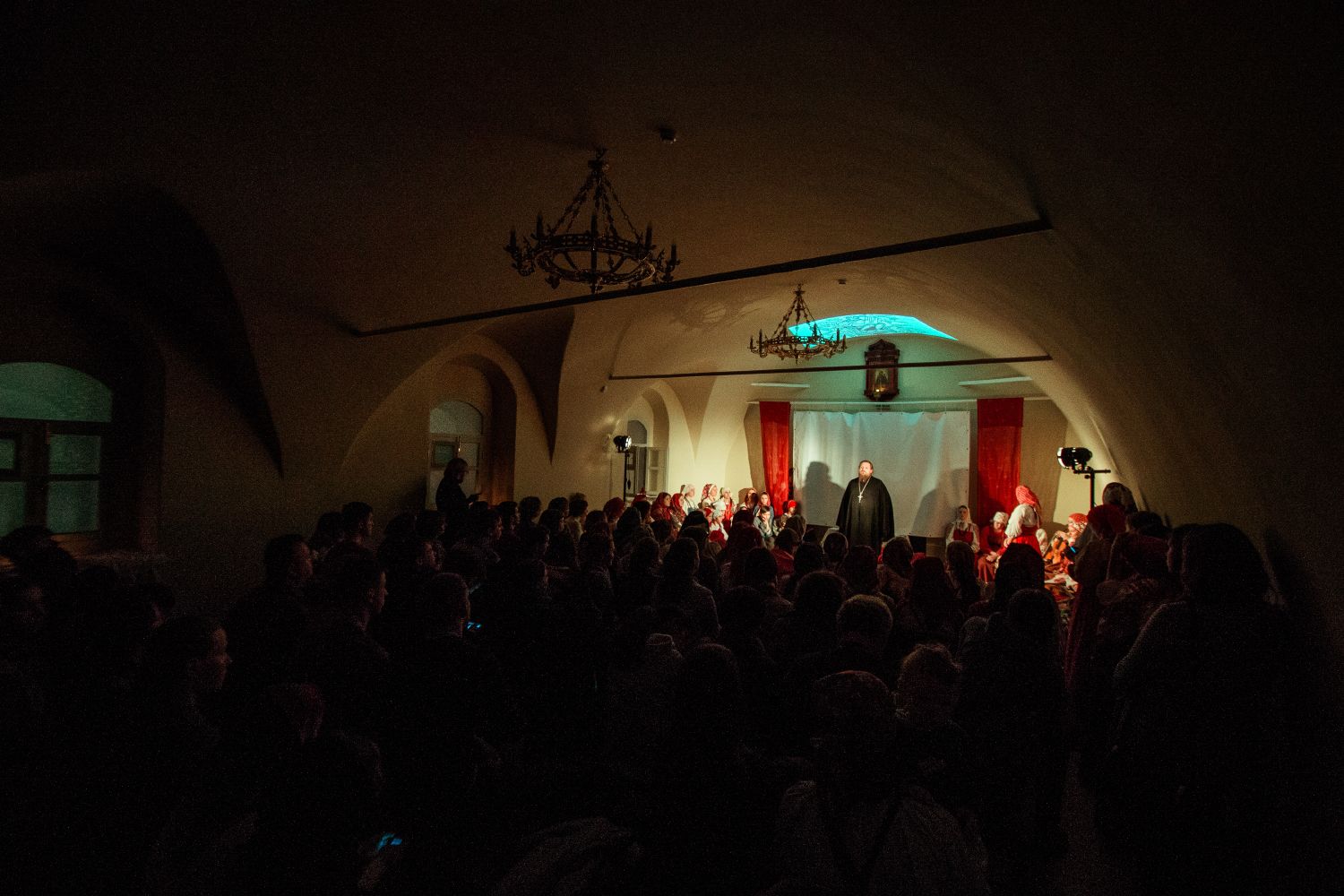 Проникновенные и понятные каждому строки заполнили трапезную храма. Могло показаться, что за окном не новостройки, а уютные избы, не автомобильные дороги, а раскинувшиеся поля, и даже не свет фонарей, а мерцание костра.