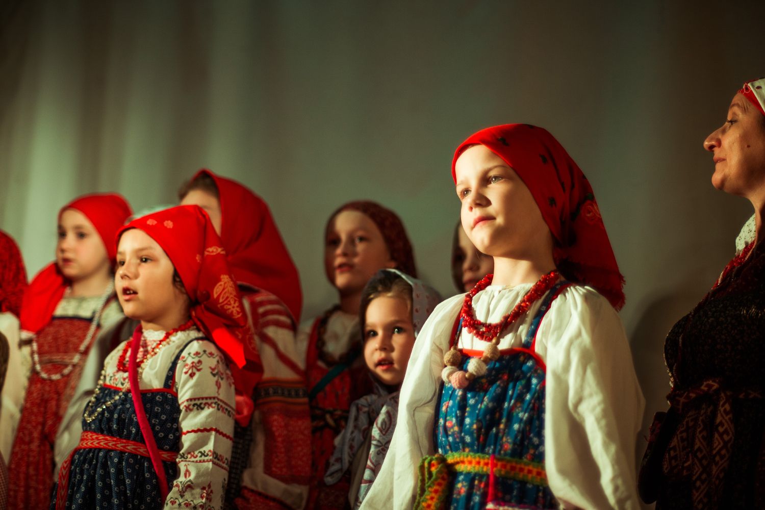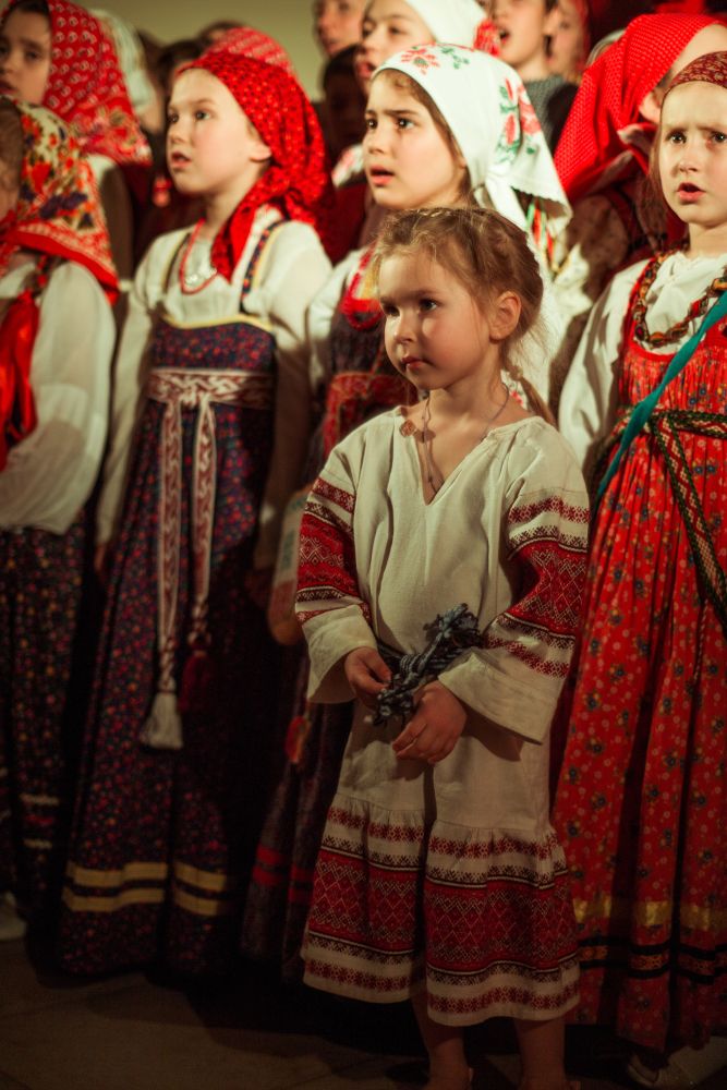 Концерт начался чтением стиха Николая Гурьянова «Благовещение» — строки о великом дне, когда даже в самом черством сердце воскресает молодое чувство. Затем звучали мысли Валерия Брюсова через и его «Благовещение». Совсем юные и постарше участники в национальных костюмах исполняли древние и современные тексты на духовные темы о пути души в бренном мире и за его пределами. Например, «заповеди блаженств» композитора Владимира Мартынова, «Как ходила мать», «Что ты спишь, душа моя»…