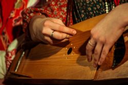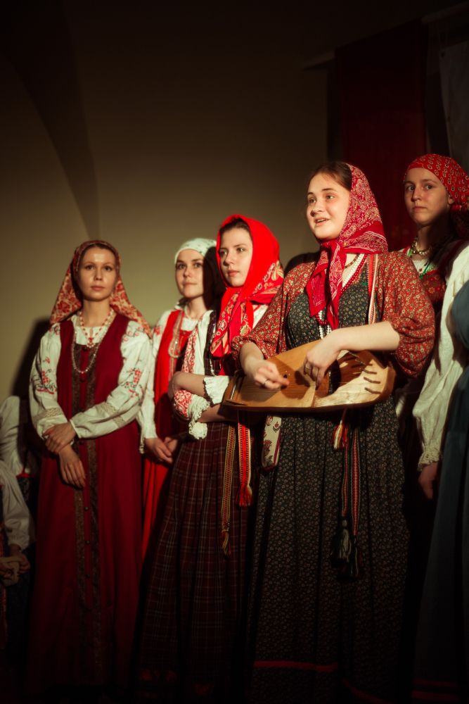 — Русско-фольклорная этнографическая группа «Оберег» занимается во дворце пионеров, а «Духов день» — здесь, в православной гимназии в честь святителя Гурия Казанского. Наш коллектив уже много лет изучает традиции русского народа. Традиции и православная культура — это один живой организм. Заметьте, что народные представления об устройстве мира плавно влились в то, что говорит нам Церковь. Нам хочется возрождать этот синтез! Чтобы было так — с утра сходили на службу или вечером на всенощную, а потом поем и отмечаем праздник. Главная задача — вырастить людей в традиции, открыть русскую культуру не пафосно, не холодно, а немного наивно и по-домашнему, что близко каждому из нас, — отметила Мария Леонтьева, участница ансамбля «Духов день».