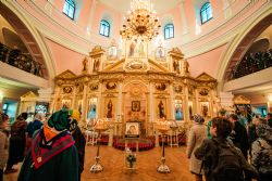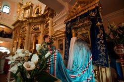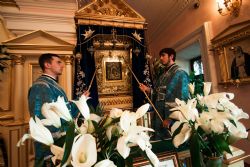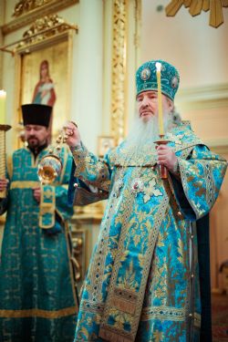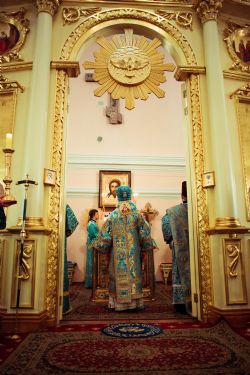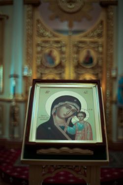 Богослужение совершалось перед главной святыней Казанской епархии — Ватиканским списком Казанской иконы Божией Матери, переданным Русской Православной Церкви в 2004 году.