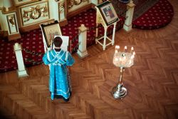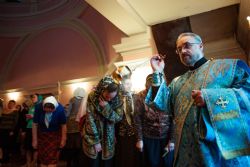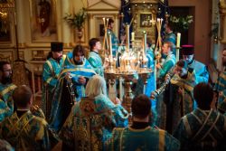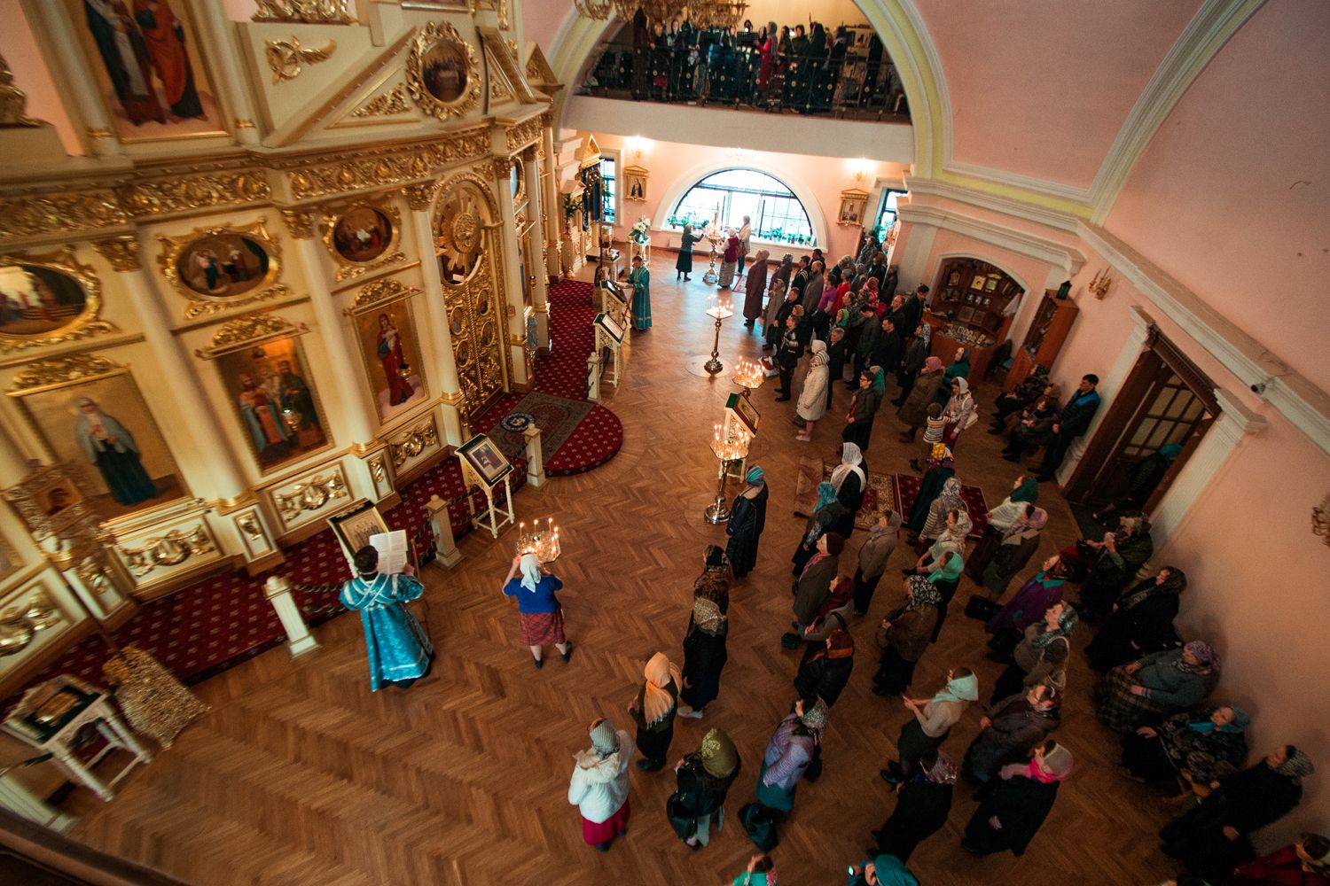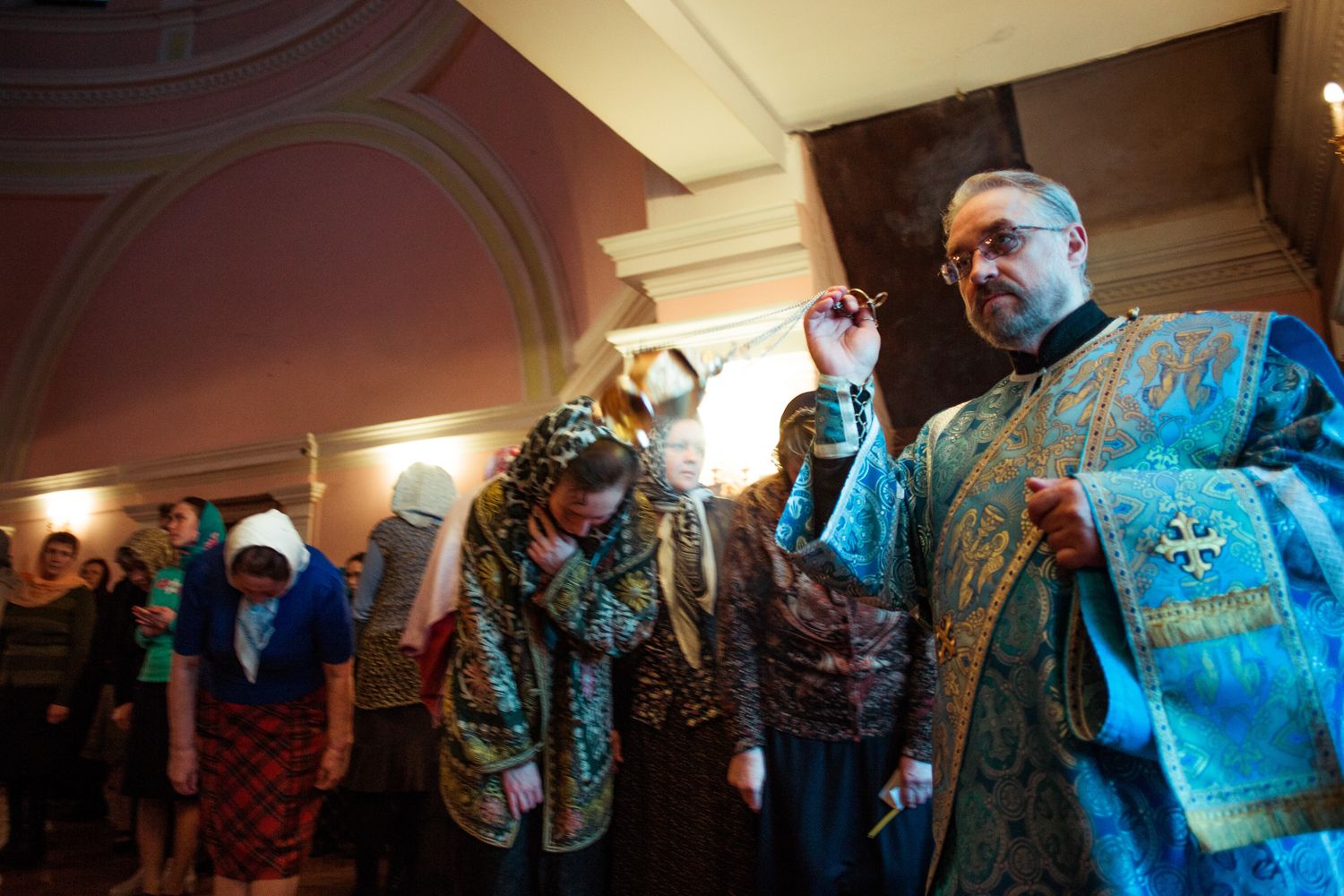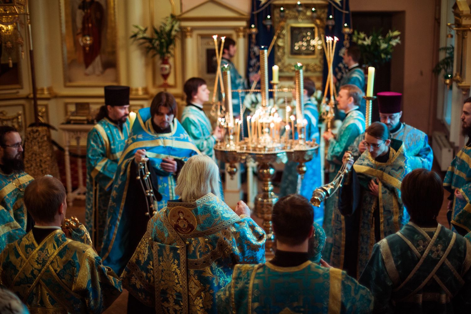 «Сегодня мы с вами пели акафист Богоматери. Почему Святая Церковь почти в самом конце поста постановила совершать это торжественное акафистное пение Пресвятой Богородице? Исторически — это память избавления Константинополя от нашествия иноплеменников. Но мы празднуем это и в день Покрова.