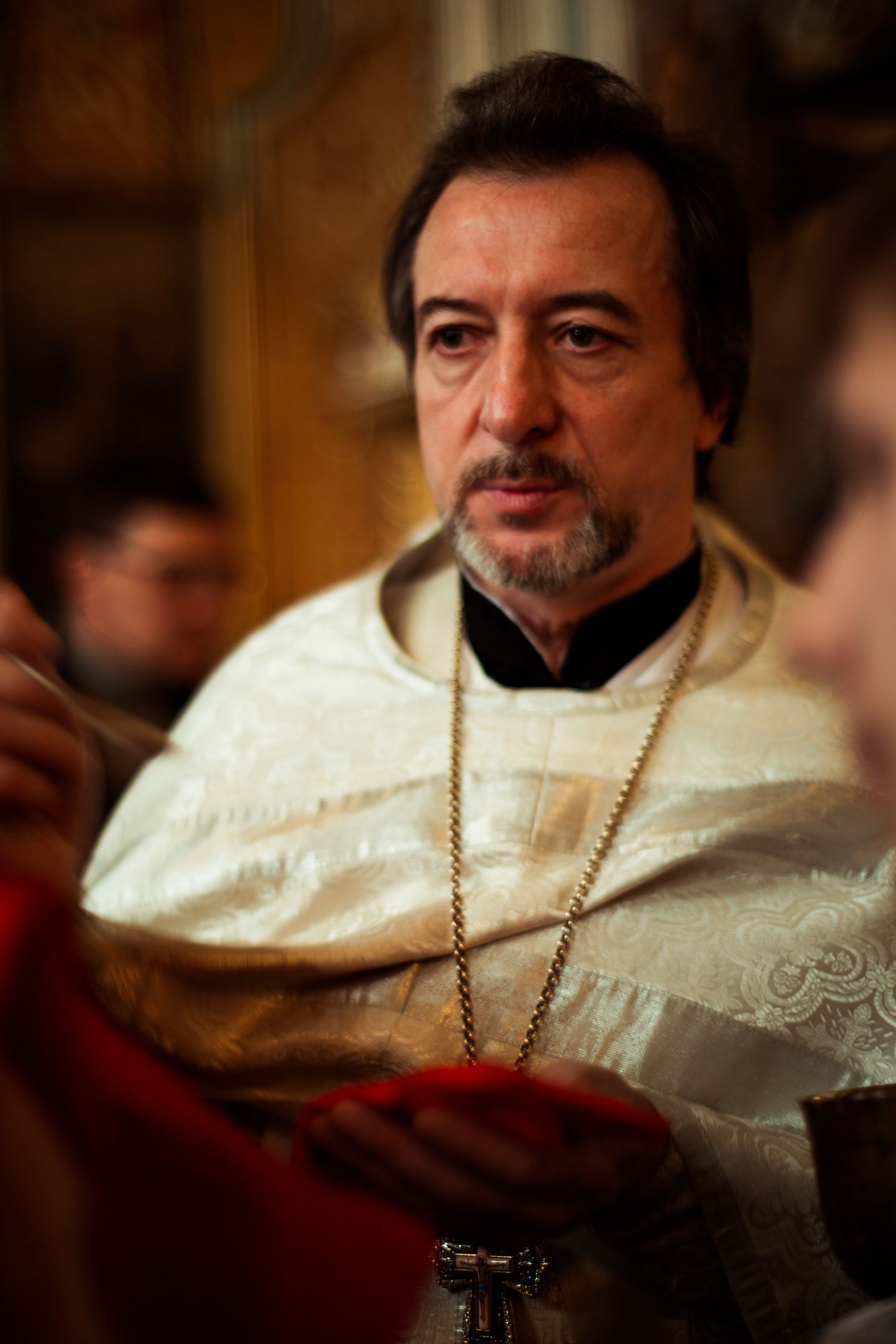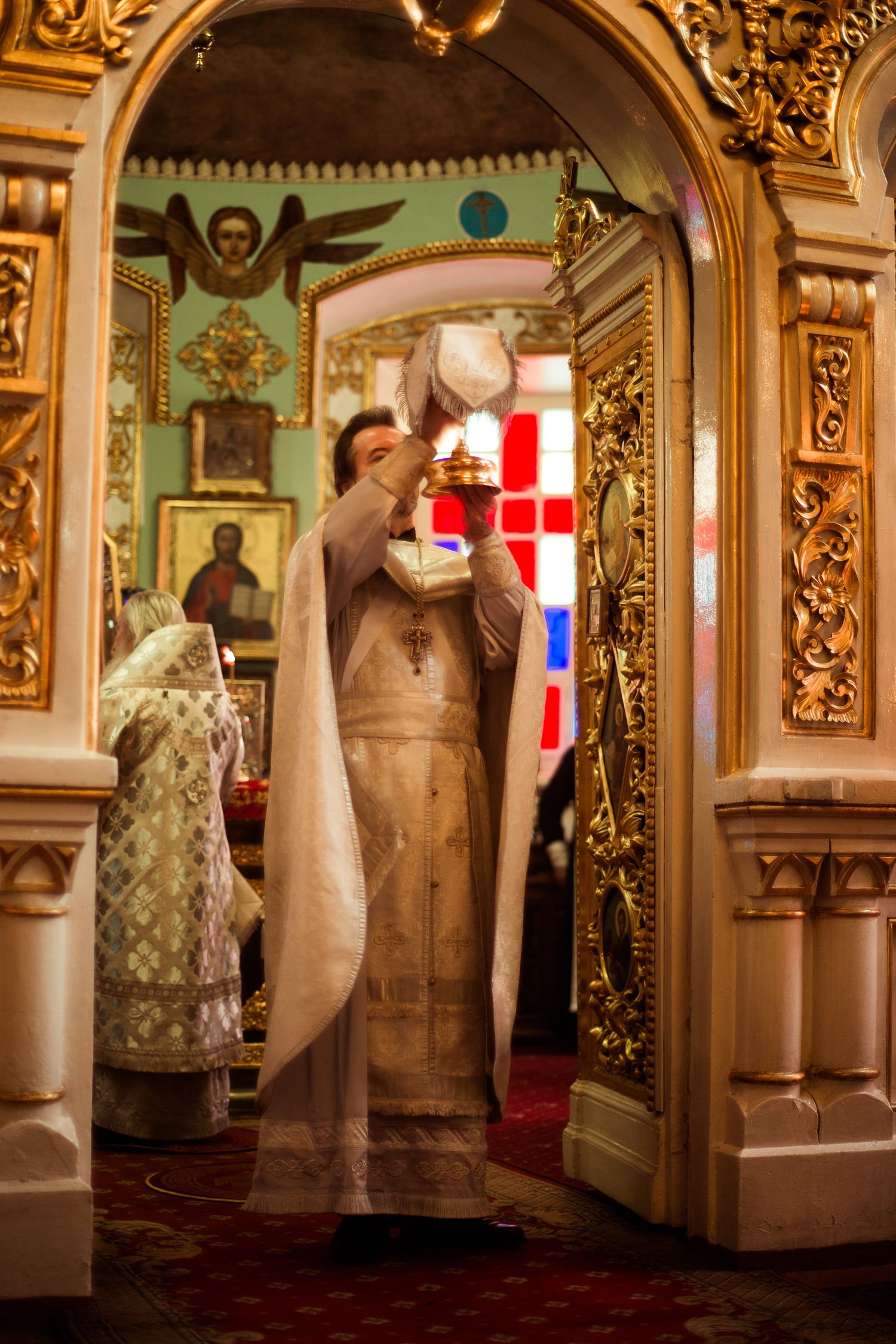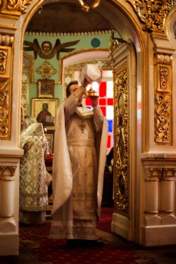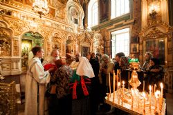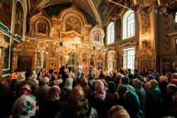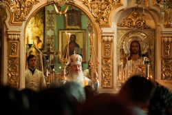 Его Высокопреосвященству сослужили клирики прихода во главе с настоятелем протоиереем Иоанном Барсуковым. Богослужебные песнопения исполнял смешанный праздничный хор под управлением Николая Беляева.