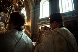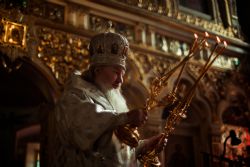 После чтения Евангелия, архипастырь обратился к верующим с проповедью, посвященной празднуемому событию — воскрешению Спасителем праведного Лазаря: