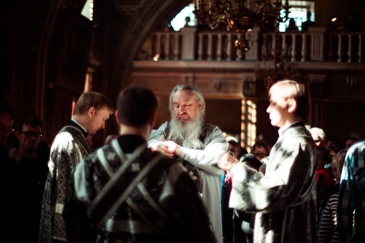 За богослужением пел смешанный праздничный хор Никольского собора под руководством Николая Беляева.
