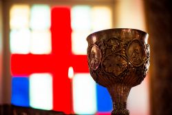 В Сионской горнице на последней трапезе Христа с учениками была определена судьба Его Церкви, когда Господь дал хлеб и вино апостолам, сказав: «Это есть Тело Мое и Кровь Моя». И ныне, когда мы причащаемся, то вкушаем истинные Тело и Кровь Христовы.