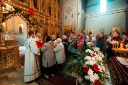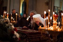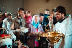 «Удивительный день — Великая Суббота. С одной стороны, еще печальный, ибо мы все эти дни воспоминали Страсти Христовы, а вчера совершили чин погребения Спасителя. Сегодня перед нами лежит Святая Плащаница, служба начинается в черных одеждах, а во время чтения Апостола священники переодеваются в одежды белые. И поются стихиры, обращенные ко Господу, лежащему во гробе: “Воскресни, Боже, судящий землю, ибо Ты царствуешь во веки”.