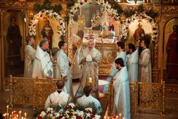 После чтения Евангельского зачала митрополит Феофан обратился к пастве с проповедью.