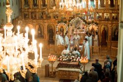 Святая Церковь еще поет: “Да молчит всякая плоть человеча”, — потому что свершилось нечто непонятное для людей. Мы видим Плащаницу, символизирующую умершего Христа. И мы слышали, о чём я сказал выше, что Господь сошёл в этот момент даже до ада.