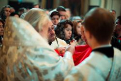 Мы стоим сейчас, хотя и огрубевшие душой, но всё же чувствуя таинственность дня сегодняшнего. Сколь же велико быть именно сегодня в храме Божием, быть сопричастным этой Великой Тайне, которую Бог привнес к нам в мир! И я бы попросил вас, мои дорогие, сейчас соединиться со Христом. Давайте помолимся. Если мы сосредоточим ум пред Богом, попросим у Него прощения, положим обещание жить по Его заповедям, поверьте, что и совсем скоро, и через большое время для нас совсем по-иному будет звучать приветствие “Христос воскресе”. И наша душа, побывав вместе со Христом в печали, примет и радость Воскресения».