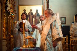 За богослужением пел архиерейский мужской хор под управлением Дениса Рогова.