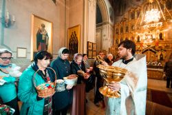 После отпуста правящий архиерей совершил благословение хлебов и вина.