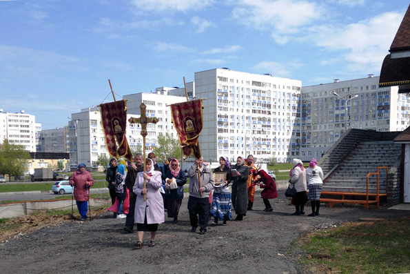 Приход вздохнул полной грудью в большом храме и в понедельник: 2 мая была отслужена пасхальная Литургия и совершен крестный ход вокруг храма.