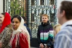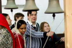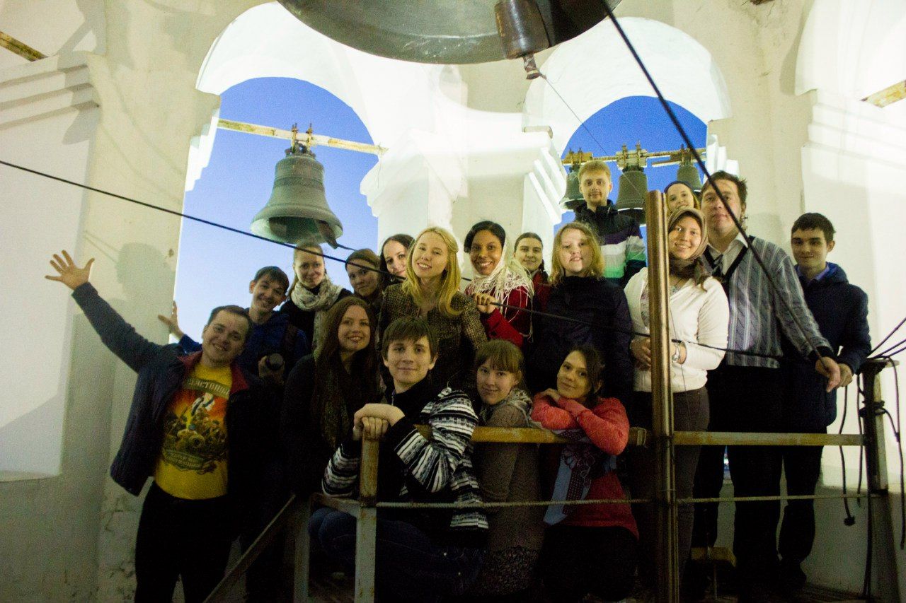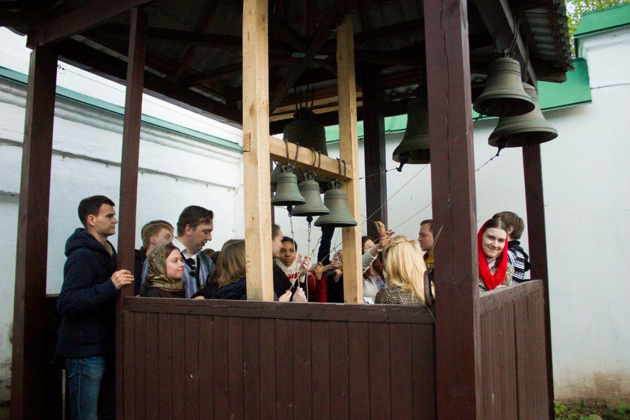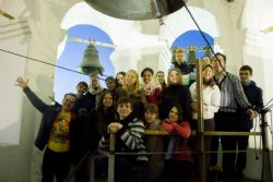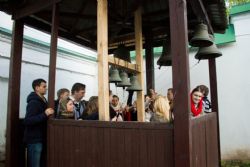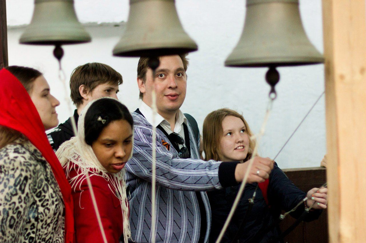 А затем молодежь с восторгом направилась к колокольне монастыря. Среди ребят нашлись те, кто хорошо знает работу звонаря, поэтому сначала был небольшой мастер-класс, а потом каждый от души позвонил.
