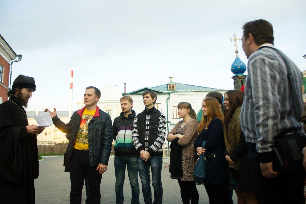 В один из дней на Светлой седмице, когда православная молодежь Казани собирается в клубе «Азбука» на Карла Маркса, 7, ребята отправилась в Казанско-Богородицкий монастырь. Здесь их встретил отец Харлампий, который поздравил ребят с праздником праздников — Пасхой Христовой, и поведал удивительную историю обители. Некоторые гости впервые услышали, а кто-то освежил в памяти события далекого 1579 года, когда после страшного пожара сама Богородица трижды явилась во сне девочке Матроне, повелевая идти на пепелище и обрести Ее образ. Матрона рассказала матери, она — архиепископу Иеремии, в итоге 8 июля 1579 икона была обретена, а на этом месте построен монастырь.