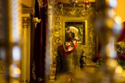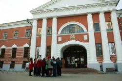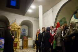 Отец Харлампий провел для ребят экскурсию по Крестовоздвиженскому храму монастыря и рассказал о чудотворном списке Казанской иконы, привезенном в Казань в 2005 году из Ватикана. С тех пор он хранится в храме и каждый может прикоснуться к святыне и помолиться у чудотворного образа.