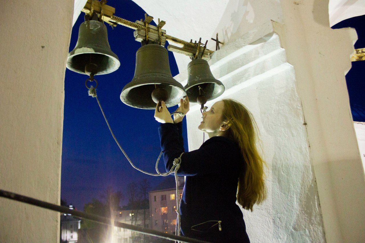 Дарья Былинцева, близко знакомая с делом звонаря, коротко рассказала о том, как колокола появились и за какой звук «отвечает» каждый из них, а затем поделилась впечатлениями: