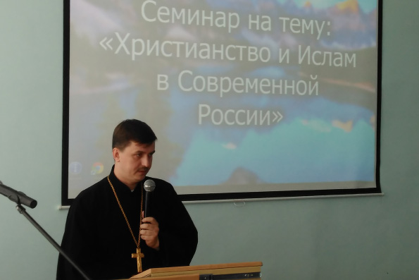 В тот же день в Зеленодольском филиале КАИ состоялся семинар на тему «Христианство и Ислам в современной России». Конфессии представляли настоятель храма в честь святителя Николая Чудотворца иерей Кирилл Назаров и имам соборной мечети Ильдар хазрат. Студенты выступили с докладами, священнослужители их комментировали и отвечали на вопросы. Встреча прошла плодотворно и интересно.