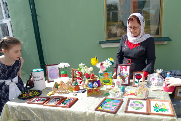 Здесь же во дворе, для всех прихожан, детей и их родителей была организована творческая благотворительная ярмарка из поделок воспитанников воскресной школы, и для того чтобы получить ту или иную поделку нужно было спеть песенку, или рассказать стихотворение, или показать любой творческий номер. Здесь же были и творческие мастерские по разрисовыванию дымковской игрушки, а также рисования на Пасхальную тему. Вдохновил и очень всем понравился мастер-класс сестер милосердия по изготовлению ангелочков, которых потом отпустили в небо вместе с воздушными шарами.