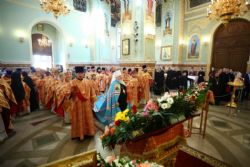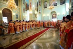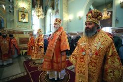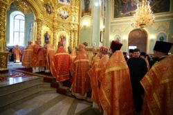 В этот день в соборе Казанской иконы Божией Матери города Ставрополя праздничную Божественную литургию совершил сонм архиереев: митрополит Ставропольский и Невинномысский Кирилл, митрополит Оренбургский и Бузулукский Валентин, митрополит Казанский и Татарстанский Феофан, председатель Учебного комитета Русской Православной Церкви архиепископ Верейский Евгений, викарий Святейшего Патриарха Московского и всея Руси, архиепископ Элистинский и Калмыцкий Юстиниан, архиепископ Пятигорский и Черкесский Феофилакт, епископ Грозненский и Махачкалинский Варлаам, епископ Магнитогорский и Верхнеуральский Иннокентий, а также епископ Георгиевский и Прасковейский Гедеон.