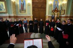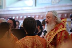 За литургией молились многочисленные священнослужители, преподаватели и студенты Ставропольской духовной семинарии и Регентской школы, сестры Иоанно-Мариинского женского монастыря, гости юбилейных торжеств.
