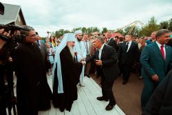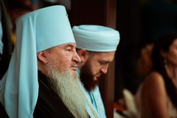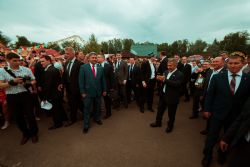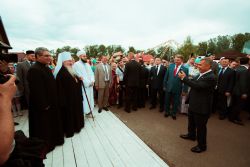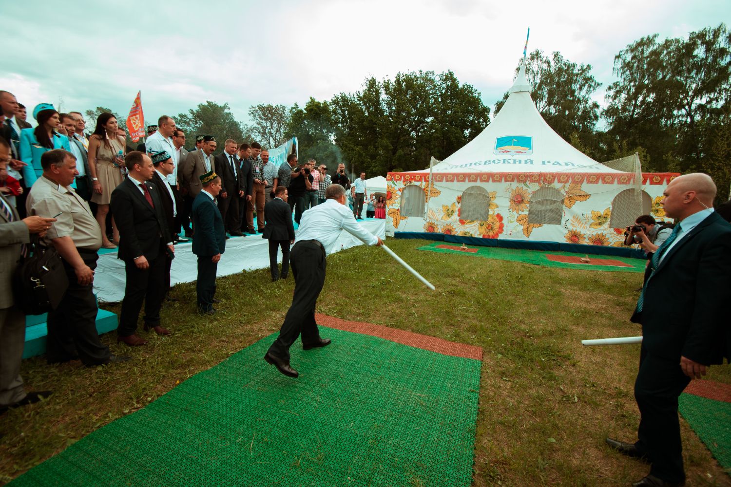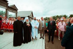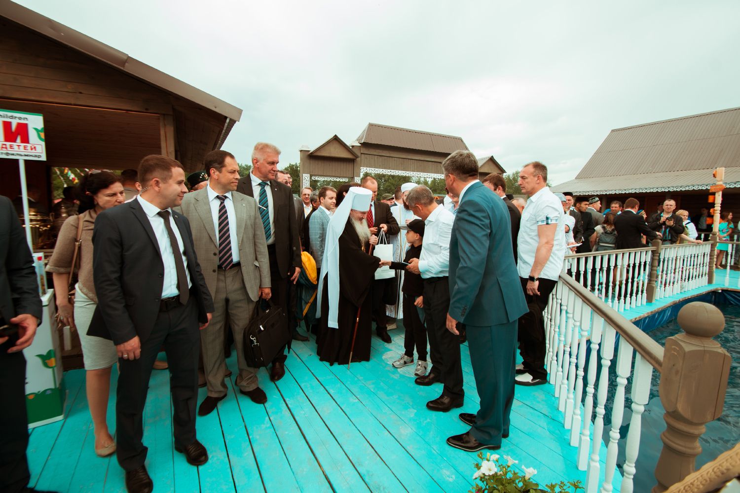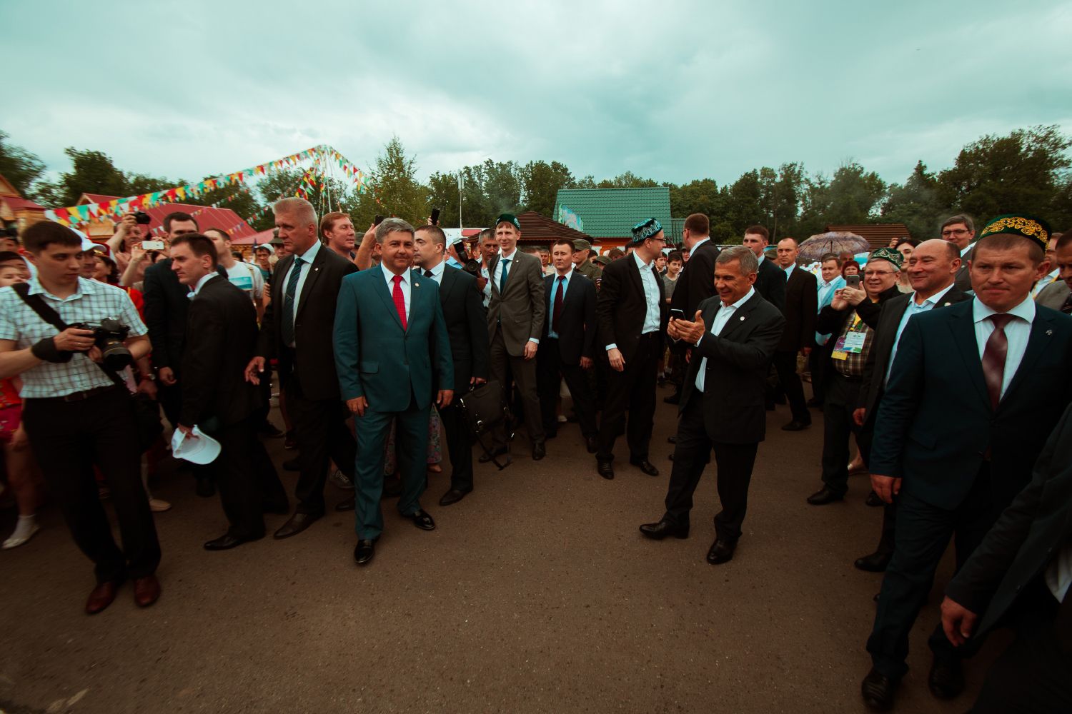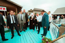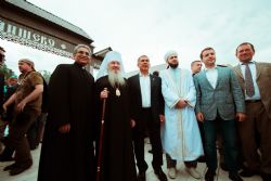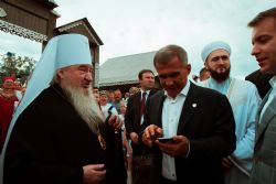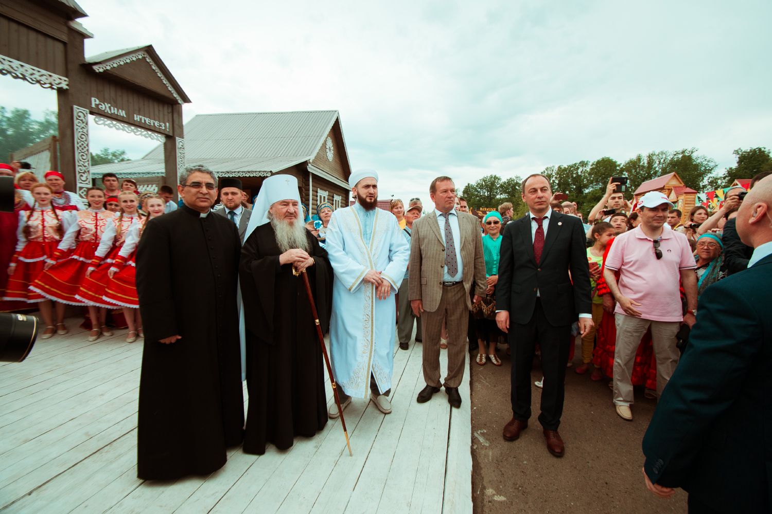 Встреча духовенства и главы Республики состоялась на территории национальной деревни Лаишевского района городка Сабантуя. После приветствия была сделана памятная общая фотография.