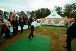 Были представлены национальные песни и танцы, гостям показали традиционные для этого праздника соревнования — борьбу, бег в мешках, разбивание глиняных горшков с завязанными глазами и др.