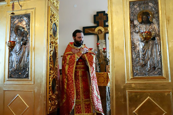 Богослужение совершил проректор по научно-богословской работе иерей Сергий Фуфаев. Песнопения Литургии исполнял хор учащихся 2-го курса РКО под управлением доцента кафедры церковно-певческих и музыкальных дисциплин и преподавателя курса «Знаменное пение» Полины Анатольевны Павловой.