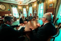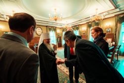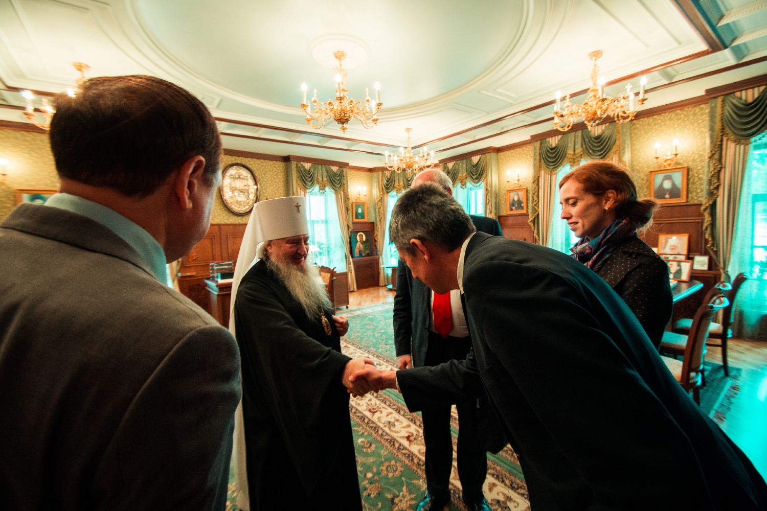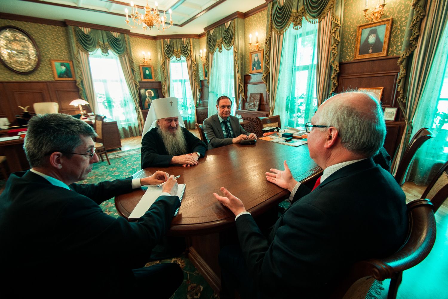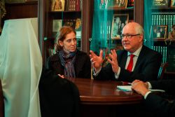 После взаимных слов приветствия митрополит Феофан отметил, что недавно он имел возможность посетить в Париже строящийся Русский духовно-культурный центр. «Надеемся, что это будет еще одна площадка для более тесного сотрудничества в духовном плане. И я рад взаимному сотрудничеству», — заметил архиерей.