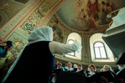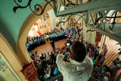 Вы собрались в этом удивительном месте — острове-граде Свияжске — чтобы исполнить и услышать музыкальные творения выдающихся русских композиторов П.И. Чайковского, С.В. Рахманинова, А.В. Никольского, Д.С. Бортнянского и других. Духовная музыка, которая писалась, прежде всего, для богослужебного использования, призвана удовлетворять не только эстетические, но и духовные потребности слушателей. Постарайтесь сегодня, услышав исполняемые мотивы и песнопения, задуматься о спасении души, о вере и любви: все то, что испытывали и сами композиторы при написании своих произведений, тем более, что певческая часть концерта проходит в стенах храма в честь иконы Пресвятой Богородицы “Всех скорбящих Радость”.