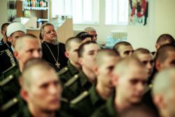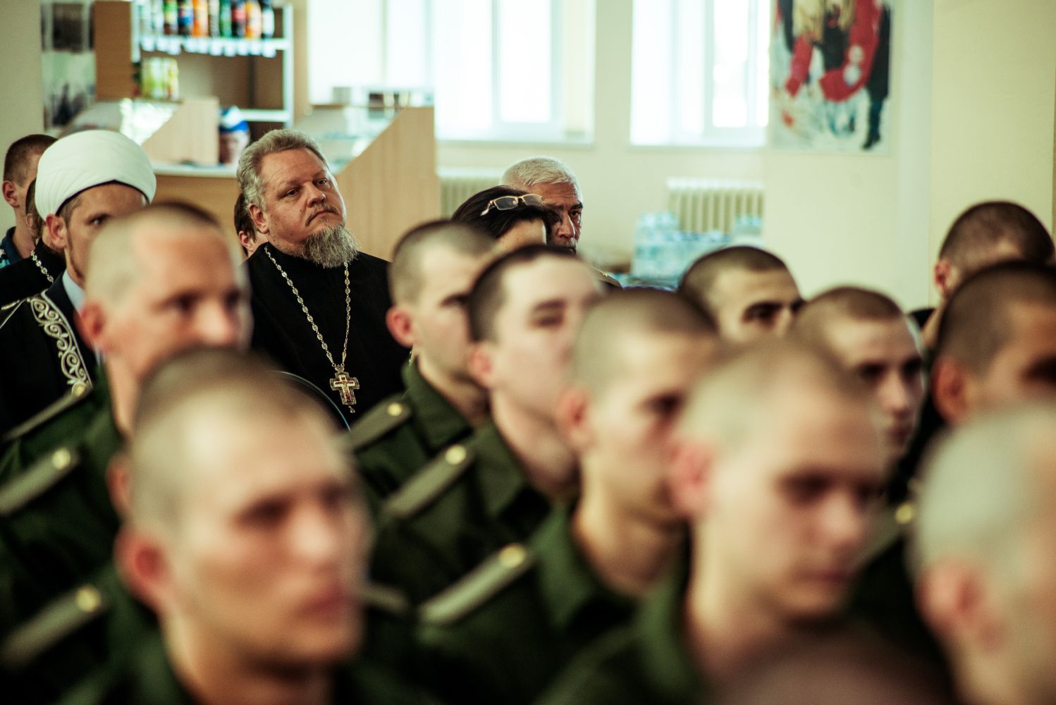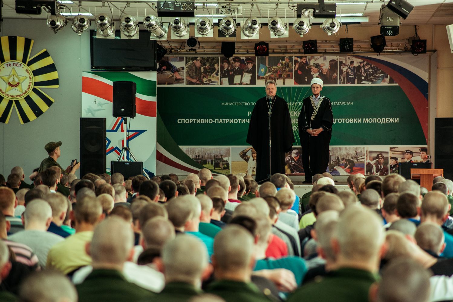 «Дорогие ребята, позвольте вам передать добрые пожелания на предстоящее великое и славное, как мы надеемся, служение Родине от митрополита Казанского и Татарстанского Феофана. Уже недалек тот час, когда вы станете не просто новобранцами, но защитниками своей Родины — великой России. Пусть в это мгновение содрогнется ваше сердце, потому что для мужчины нет более почетного звания во всей его жизни. Защитниками Отечества выбирают тех, кому доверяют, кто в решающую минуту не бросит и не подведет и будет до последнего стоять за свой дом и кто исполнит свой долг перед Родиной и народом».