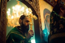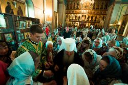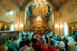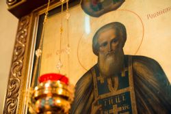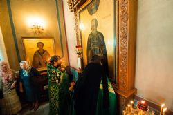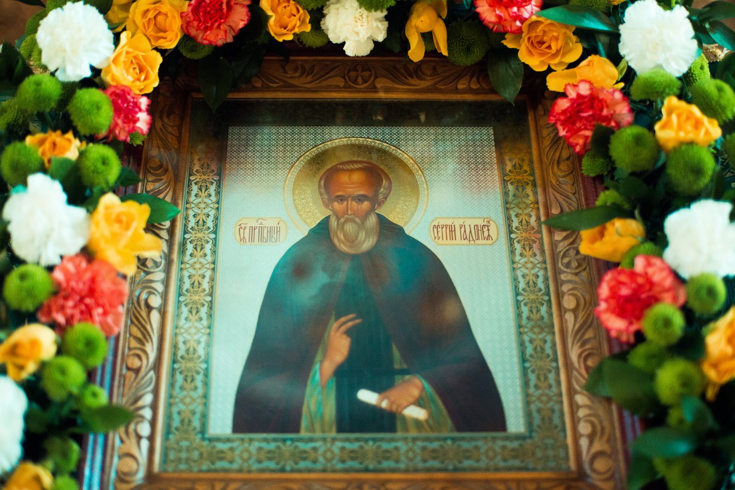 По заамвонной молитве перед храмовой иконой с частицей святых мощей преподобного Сергия духовенством было пропето славление и прочитана молитва Игумену земли Русской.